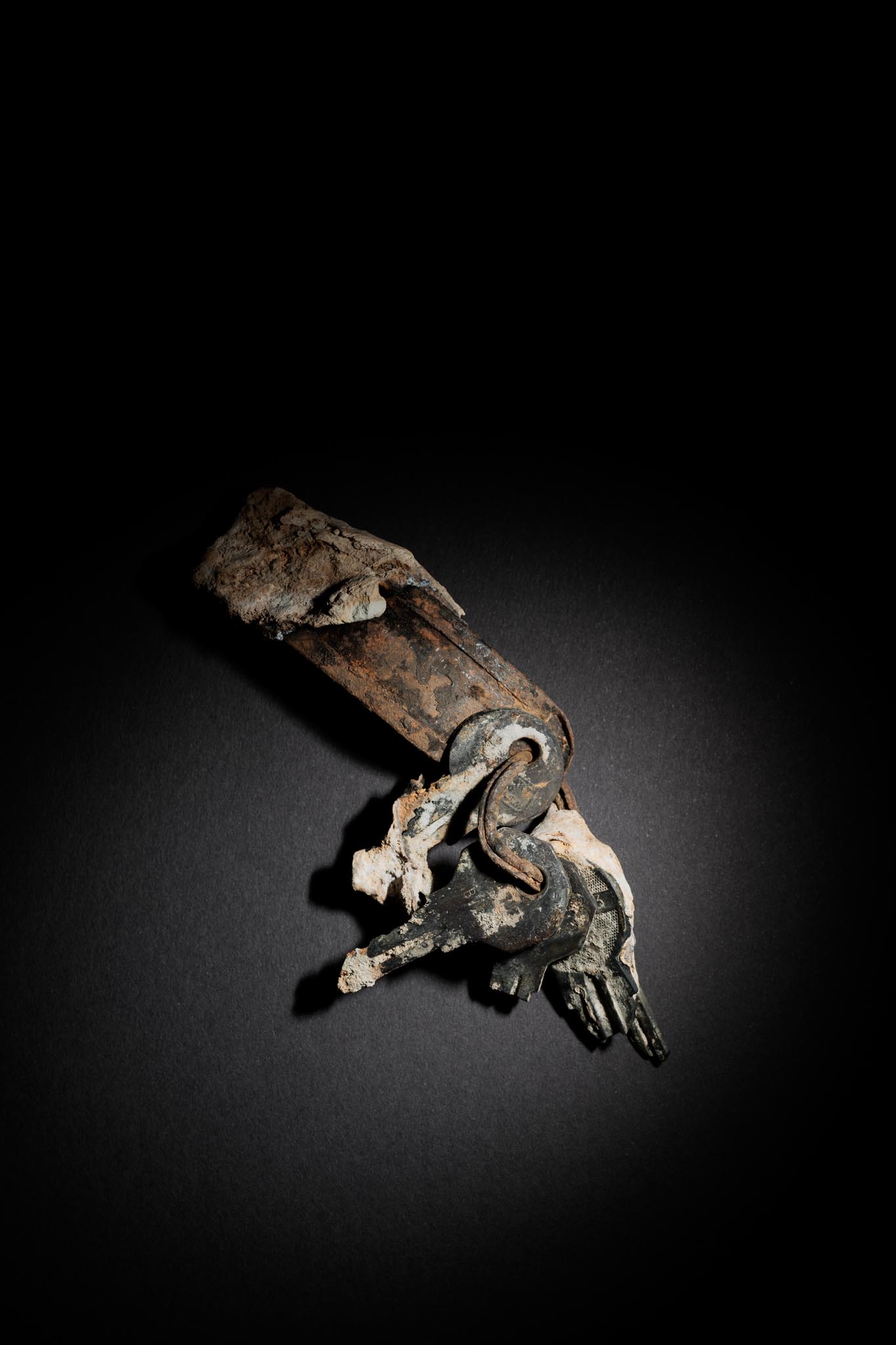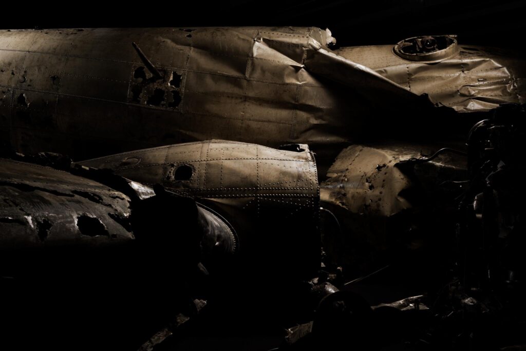Utmaningen var att skapa bilder som kändes dramatiska och som "hämtade ur djupet". Jag arbetade med modulär ljussättning för att kunna fotografera flexibelt, särskilt i de fall föremålen satt i glasskåp (som nöddörren från flygplanet). En del bilder krävde fokusstackning för att ge tillräckligt skärpedjup, tex vigselringen.